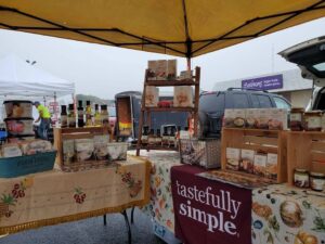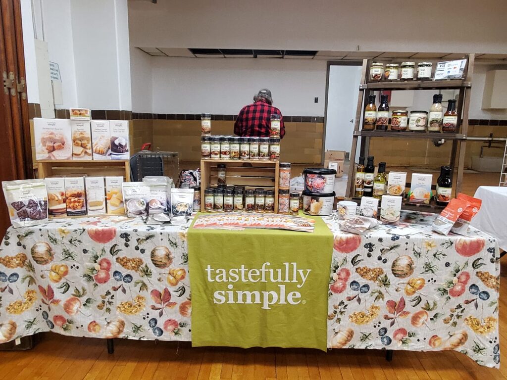 Christy is an on the go Tastefully Simple Consultant. Besides the Farmer’s Market every Saturday she does all sorts of parties, Tasting, Traditional and Books Parties. Christy says, “you get to meet new people and help them with their meal planning. I find it very satisfying”.